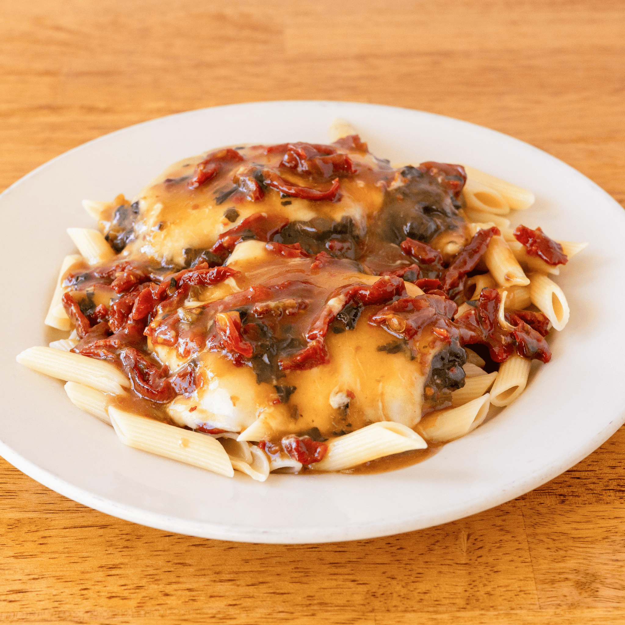 Sautéed in garlic and sun-dried tomatoes topped with spinach and cheese finished with a sherry sauce