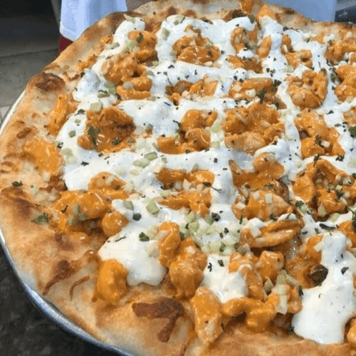 Topped with BBQ sauce, mozzarella,& chicken meat.