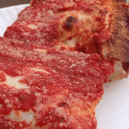 Homemade traditional tomato sauce with homemade melted cheese.