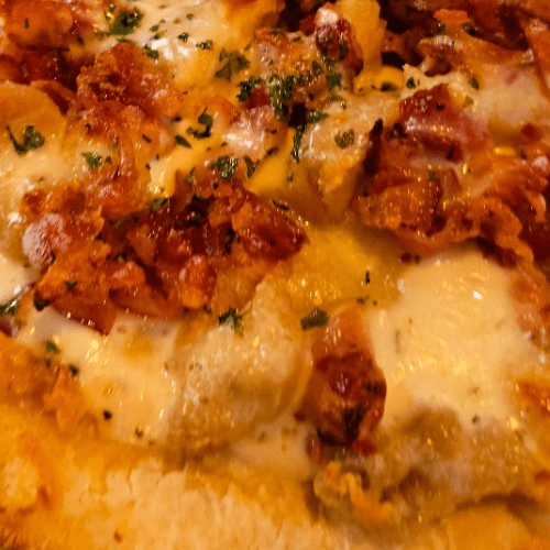 Mozzarella cheese, bacon, chicken, & yummy ranch dressing.